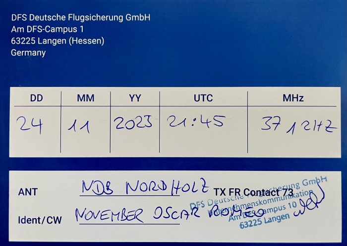 To my big surprise I received 4 QSL cards, the real stuff, by mail, from the Deutsch Flugsicherung. I sent my reception reports in 2023… 2 years ago. But they were worth waiting for: