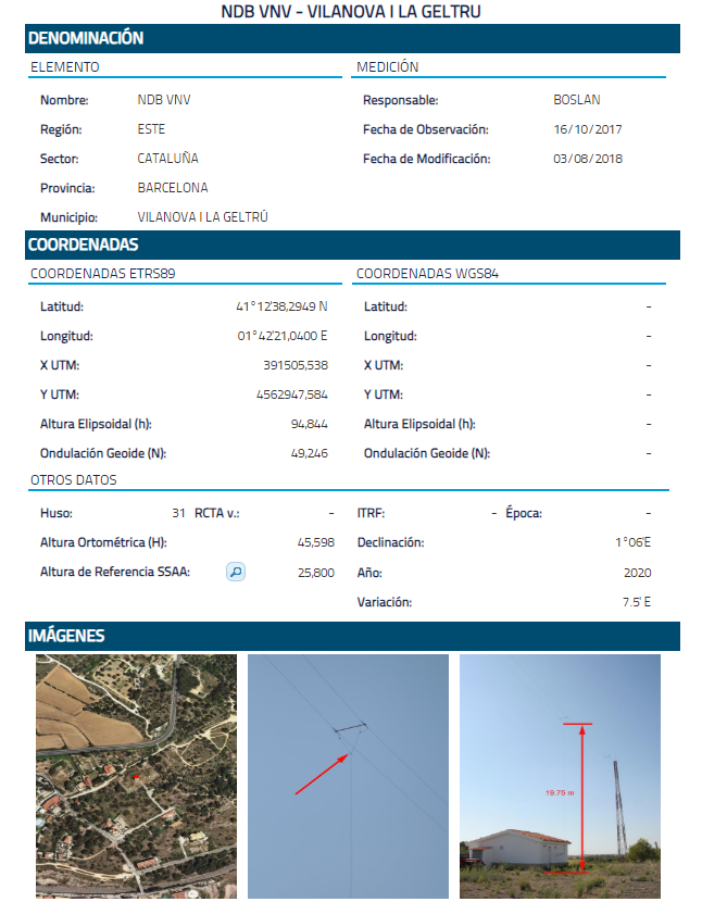 The set-up of the beacon is typical for most of the Spanish NDBs: a 200 W transmitter with a “Sistema radiante de tipo T”: