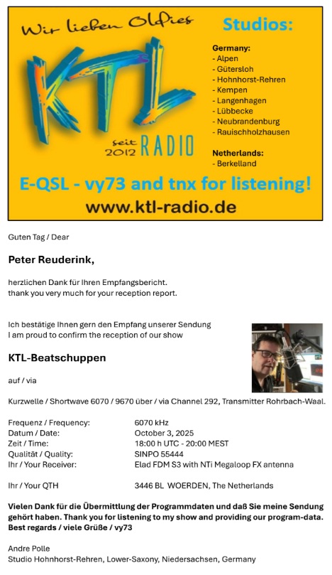 My request didn’t make it to the show, but I got their e-QSL. I sent my report to andre(at)ktl-radio.de .