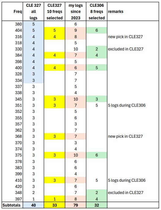 – Two frequencies, 348 and 330 disappointed me in CLE306 big time. So I excluded them for CLE327.