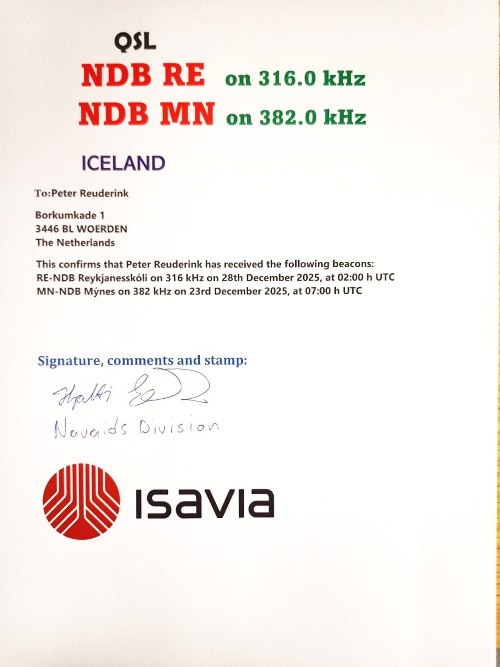 Mr. Hjalti Geir Guðmundsson from Isavia Navaid Division was so kind to confirm my reception: