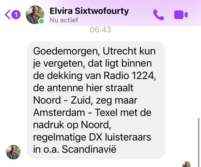 But a few weeks ago I received a message inviting me to tune in to their new frequency of 1224 kHz when I was in the area again. But as I realized that a move to 1224 kHz meant that they increased power I answered that I should be able to hear them here in Woerden. The answer I got was: “forget it, in Utrecht Radio 1224 wiil be dominant: