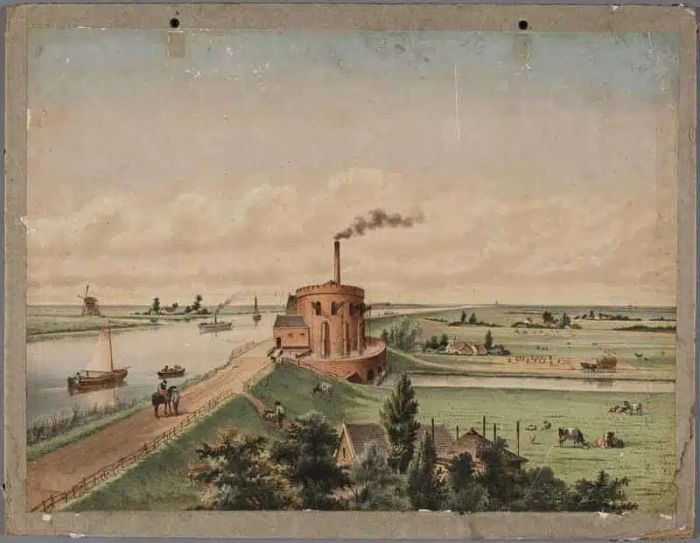 Everything changed with the introduction of the steam engine. In May 1840, thousands of laborers began digging a 60-kilometer-long ring canal and constructing a ring dike with shovels and spades. Three steam pumping stations were built: De Leeghwater, De Cruquius, and De Lynden. On July 1, 1852, the Haarlemmermeer was completely drained, and the development and parcelling of the more than 18,500 hectares of new land could begin.