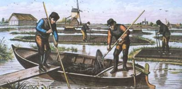 A “Turftrekker” or “Peat Puller” was a worker that extracted peat using a scoop with a net attached. Peat was used as a fuel to heat houses before we switched to coal (and Holland what late in doing so). However, with the peat being extracted, deep pools of water formed in Holland.