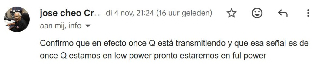 So as their website seemed “alive and kicking” I sent a report to Mr. Jose Cheo Cruz and received a confirmation within an hour… so it seemed that it really was “Once Q”, currently still at low power, soon to be heard a full power.